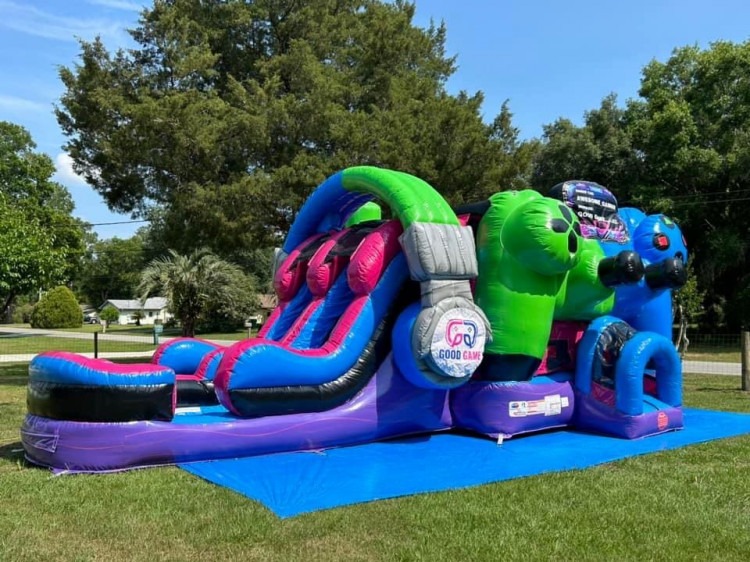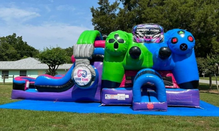 Game on! The Gamer Double Lane Wet/Dry Combo is the ultimate inflatable experience for video game fans and party lovers alike. With bold, vibrant graphics inspired by classic gaming and modern consoles, this combo unit turns any backyard or event into a real-life adventure.