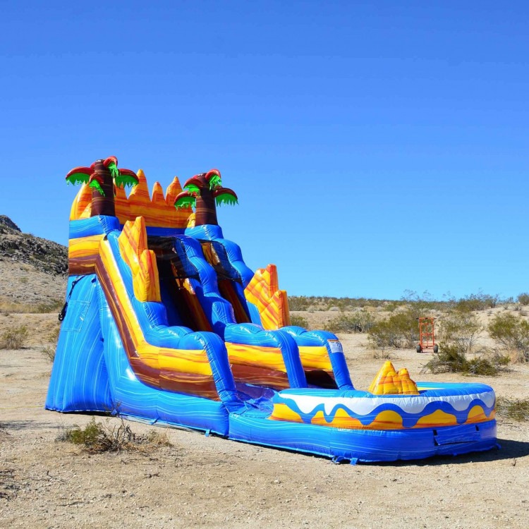 Turn up the fun and cool down the heat with our 17ft Blue Lagoon Single Lane XL Pool Water Slide—only from Bounce Bros Entertainment! This vibrant, tropical-themed inflatable water slide is perfect for backyard birthdays, summer parties, school events, and more.
