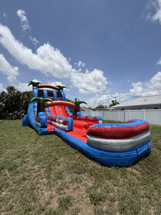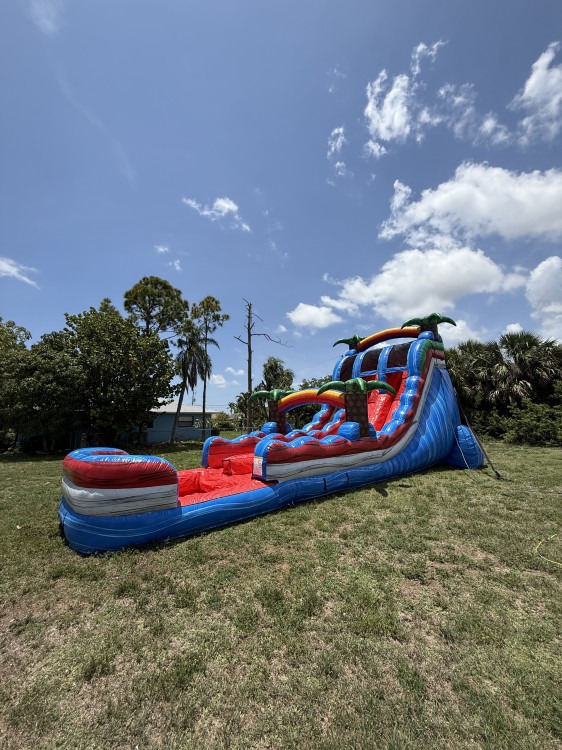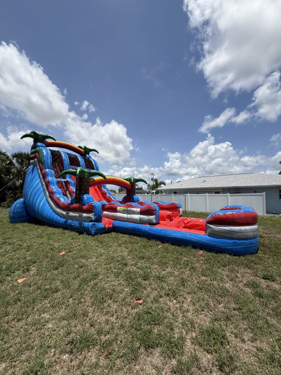With its tropical palm design and Baja-inspired color scheme, this inflatable slide is built to turn heads. Standing 20 feet tall and ending in a refreshing splash zone, it’s the ultimate centerpiece for birthday parties, school field days, summer camps, and community festivals.